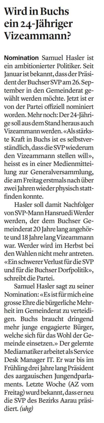 Wird in Buchs ein 24-jähriger Vizeamman?